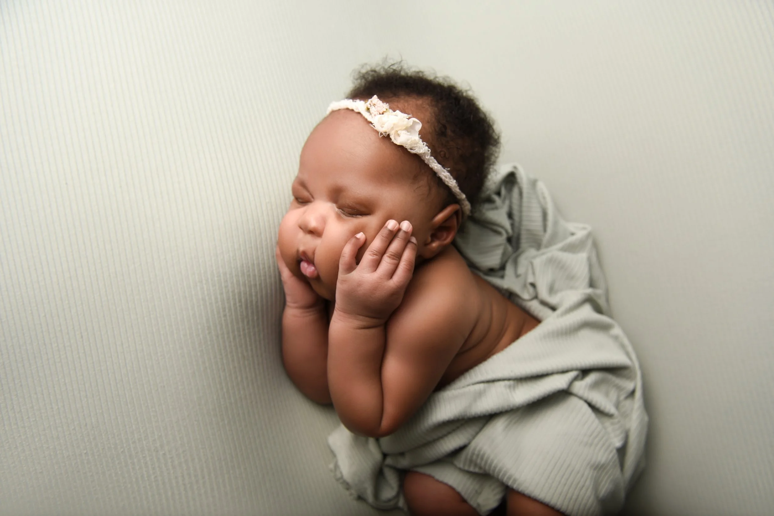 Welcoming a newborn into the world is one of life’s greatest blessings, and this sweet baby girl’s session was full of tender details and quiet beauty. Styled in soft sage, blush, and creamy neutrals, her portraits showcase the timeless beauty of newborn photography.