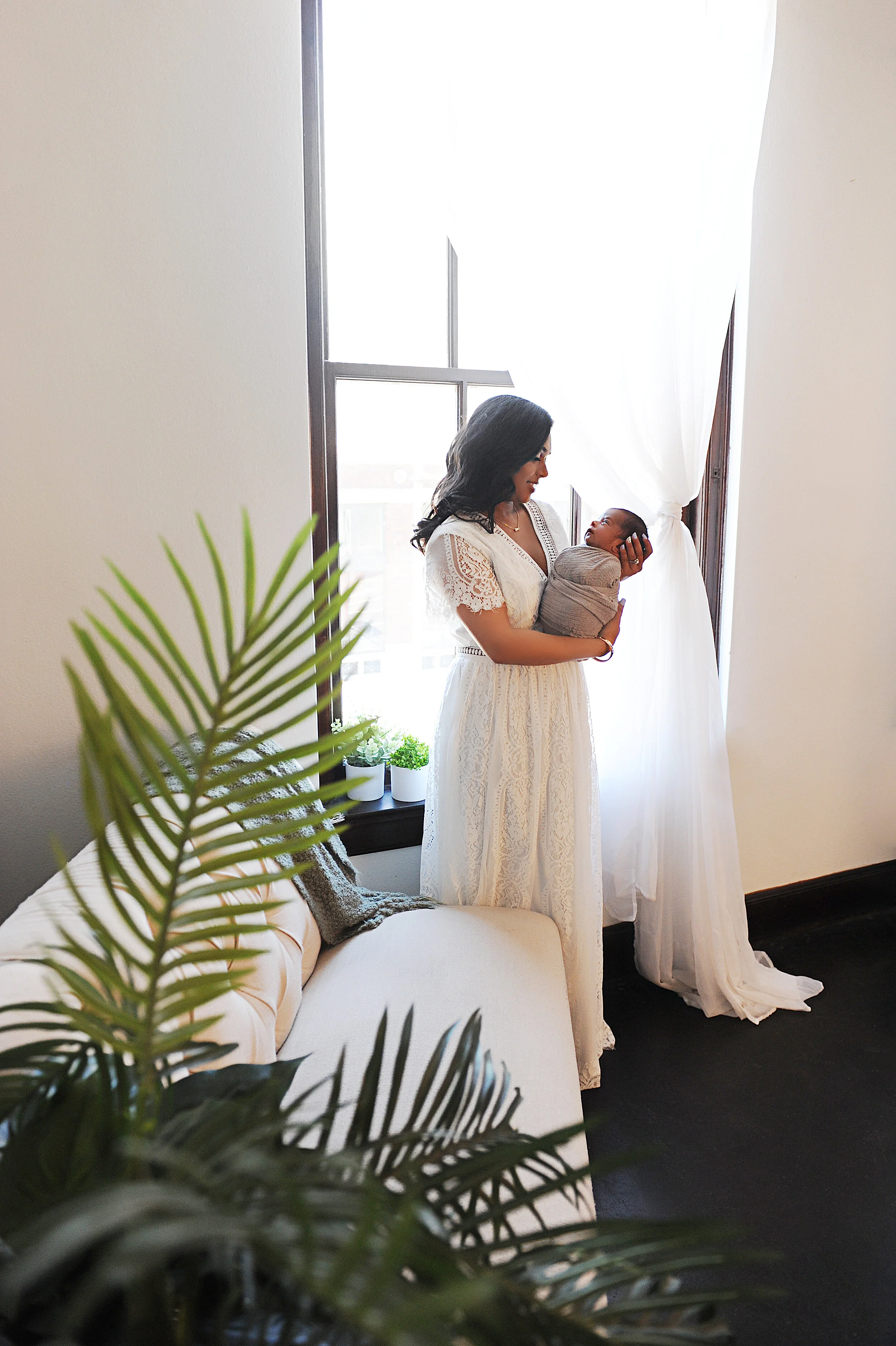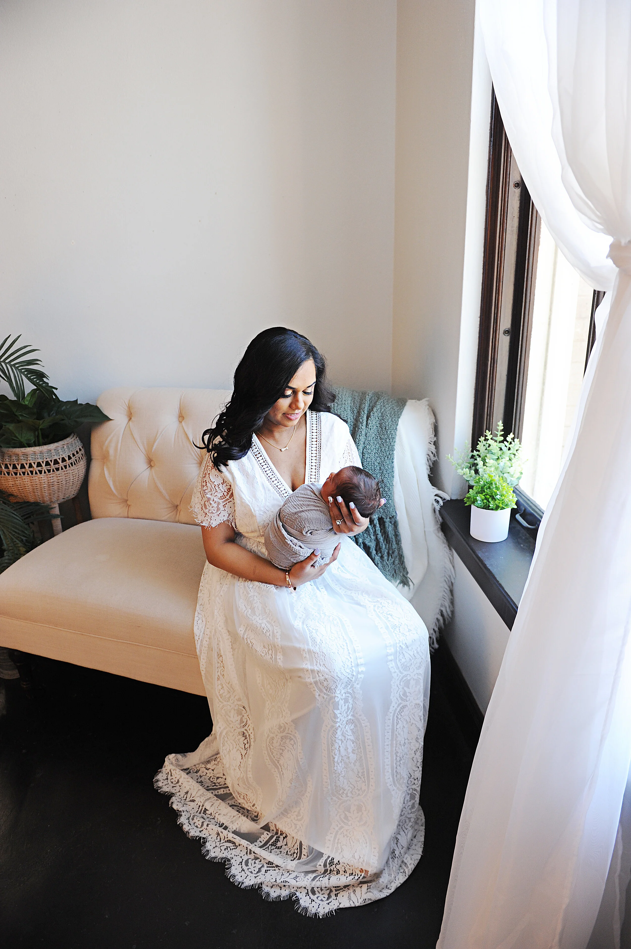 Mama picked this white gown from my client closet for her family photos. She just glows in it too. I do my best to provide options for my mom’s to wear so that they aren’t overwhelmed, especially first time moms. Those first few weeks are such a blur and you don’t want to focus on anything but baby. You certainly don’t need to worry about what you’ll wear for photos.