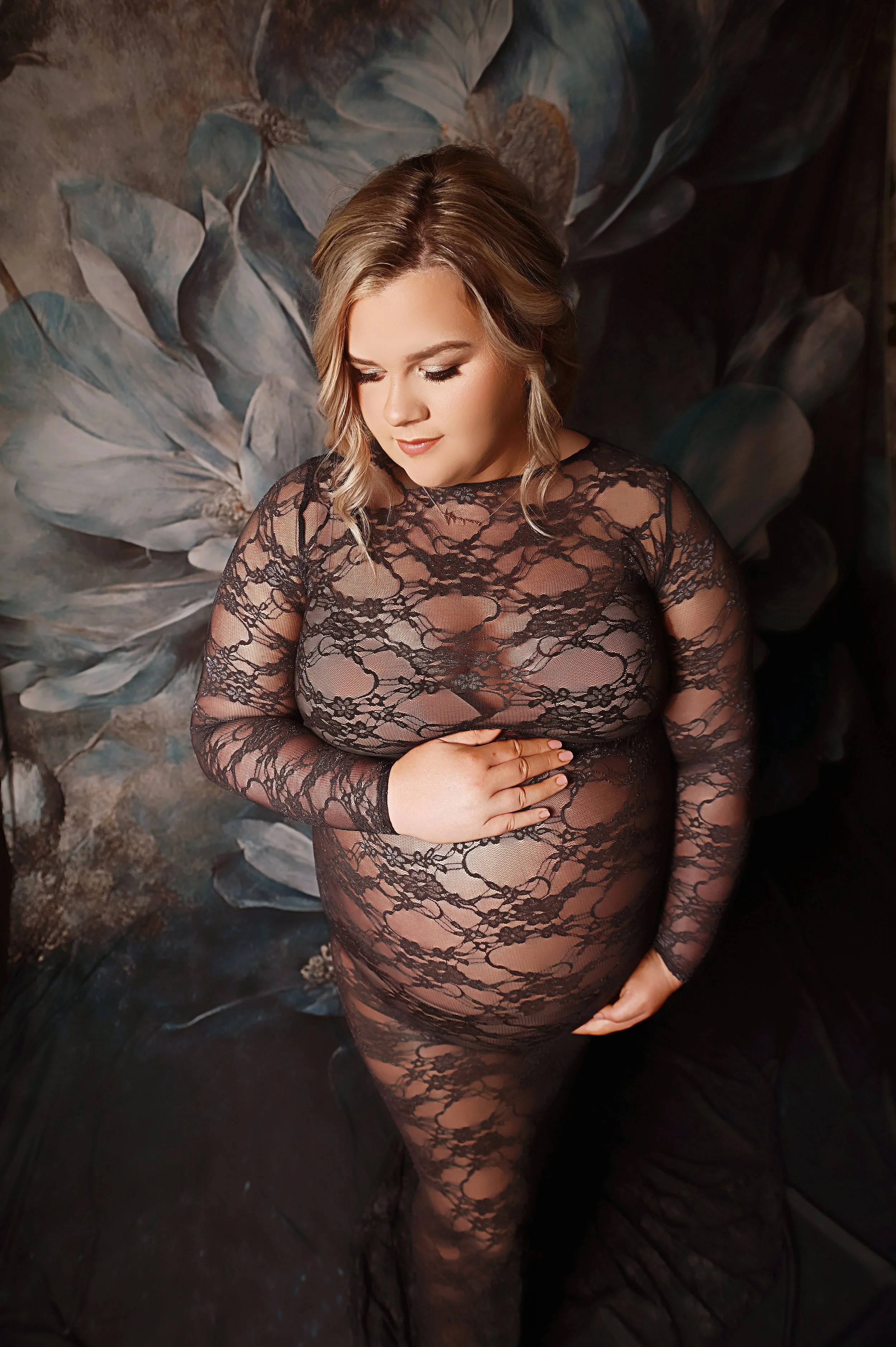 This gown fits up to size XL and I use it for newborn sessions a lot too.